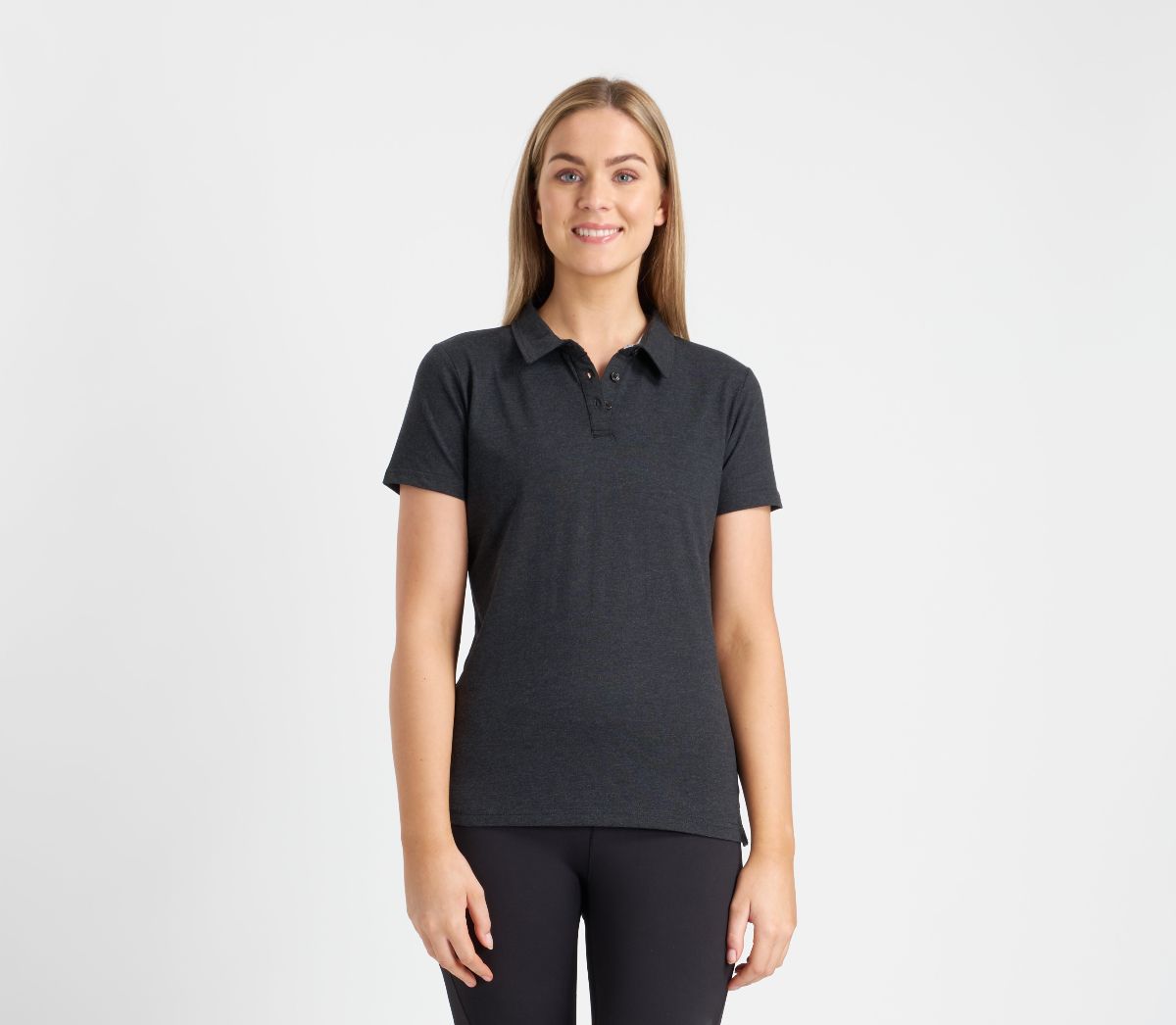 Short sleeve collared polo shirt, 3 button placket, tonal buttons, side seamed, double needle hems, preshrunk to minimise shrinkage